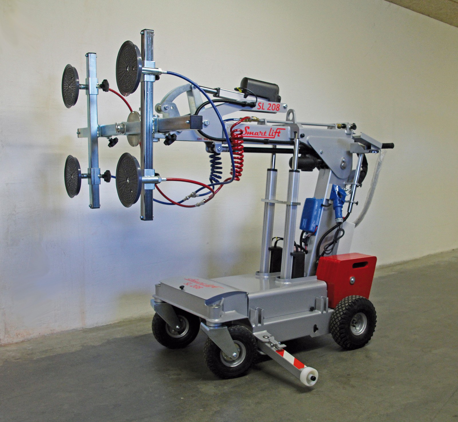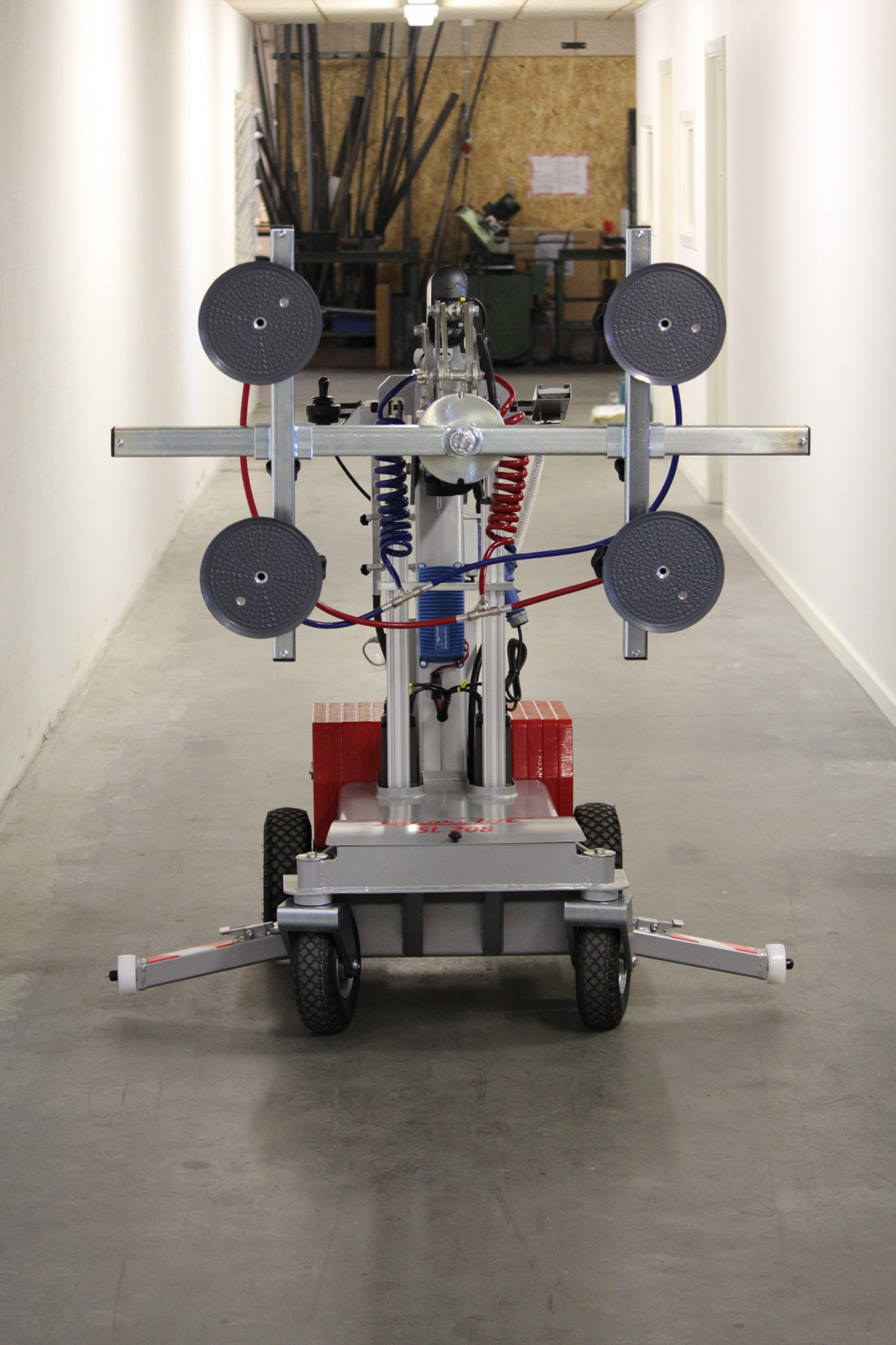 The SL208 Indoor is the most compact and manoeuvrable lift on the market. Easy to control using a joystick and supported by two powerful 1.500W electric motors enables this glass robot to rotate about its own axis.