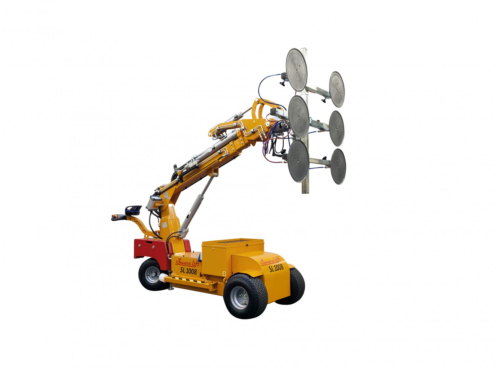 This is our most advanced glazing robot. It combines maximum lifting power and reach. Handle large sheets of glass with ease and precision using the multi-functional, rotating head.