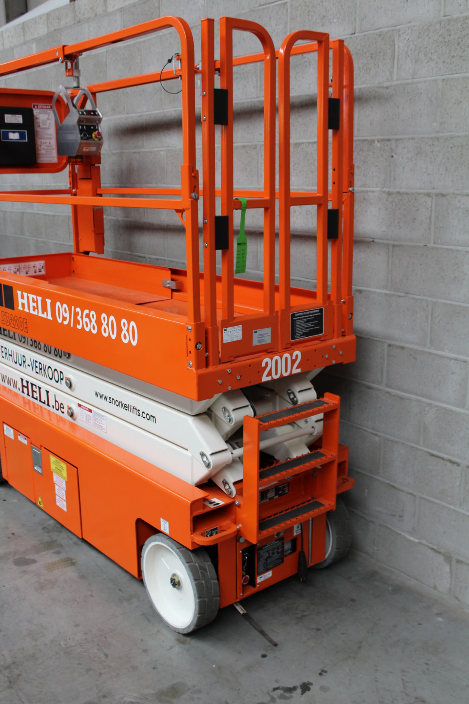 De elektrische schaarlift Snorkel S3220E is een zelfrijdend toestel dat aangedreven wordt door 4 x 6V-batterijen. Je laadt het eenvoudig op door het aan te sluiten op de netspanning.