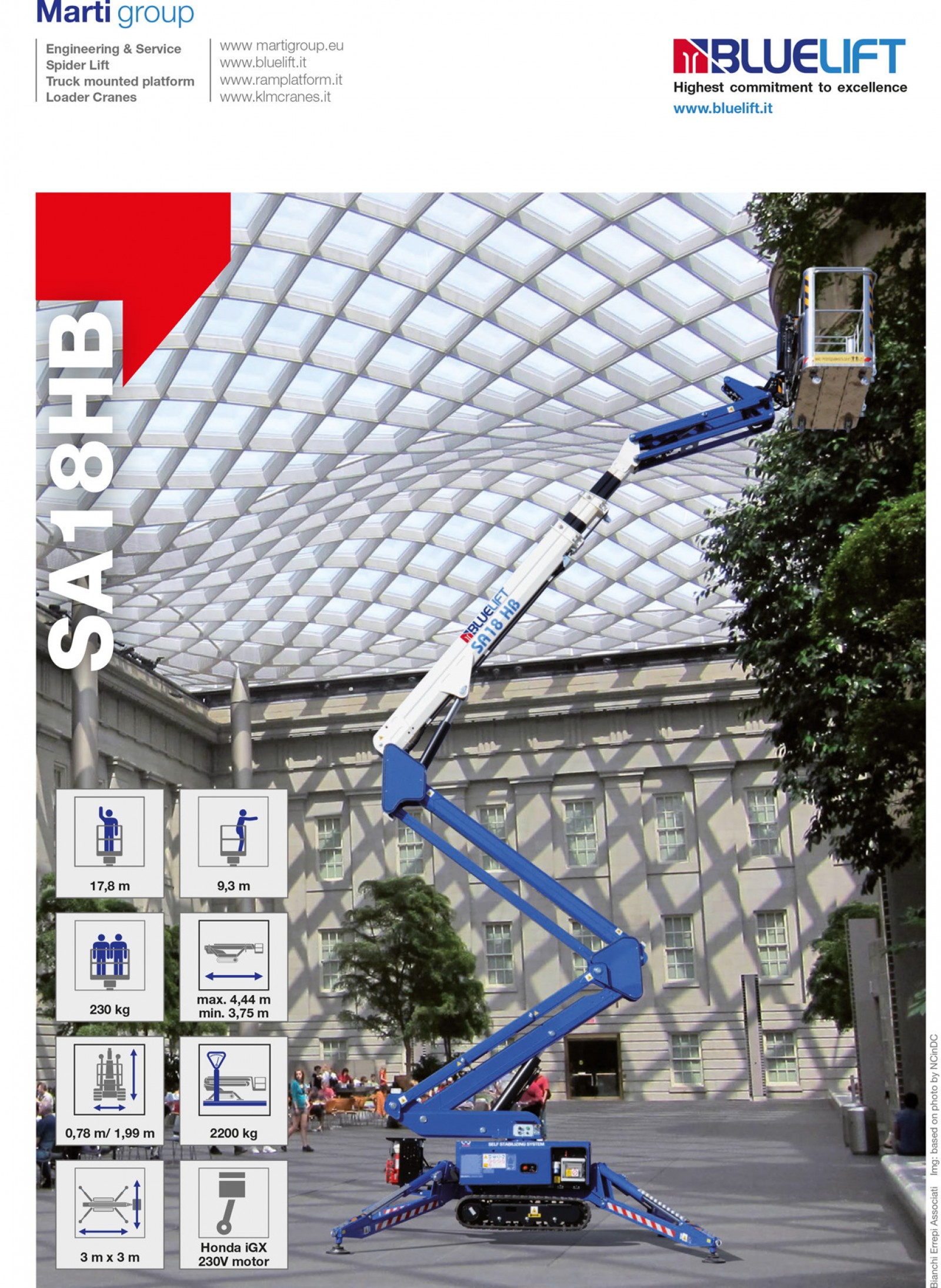 De SA18 is de 18 m compacte spinhoogwerker op rupsen van Bluelift. De aluminium kooi is makkelijk demonteerbaar en standaard voorzien van kooirotatie.